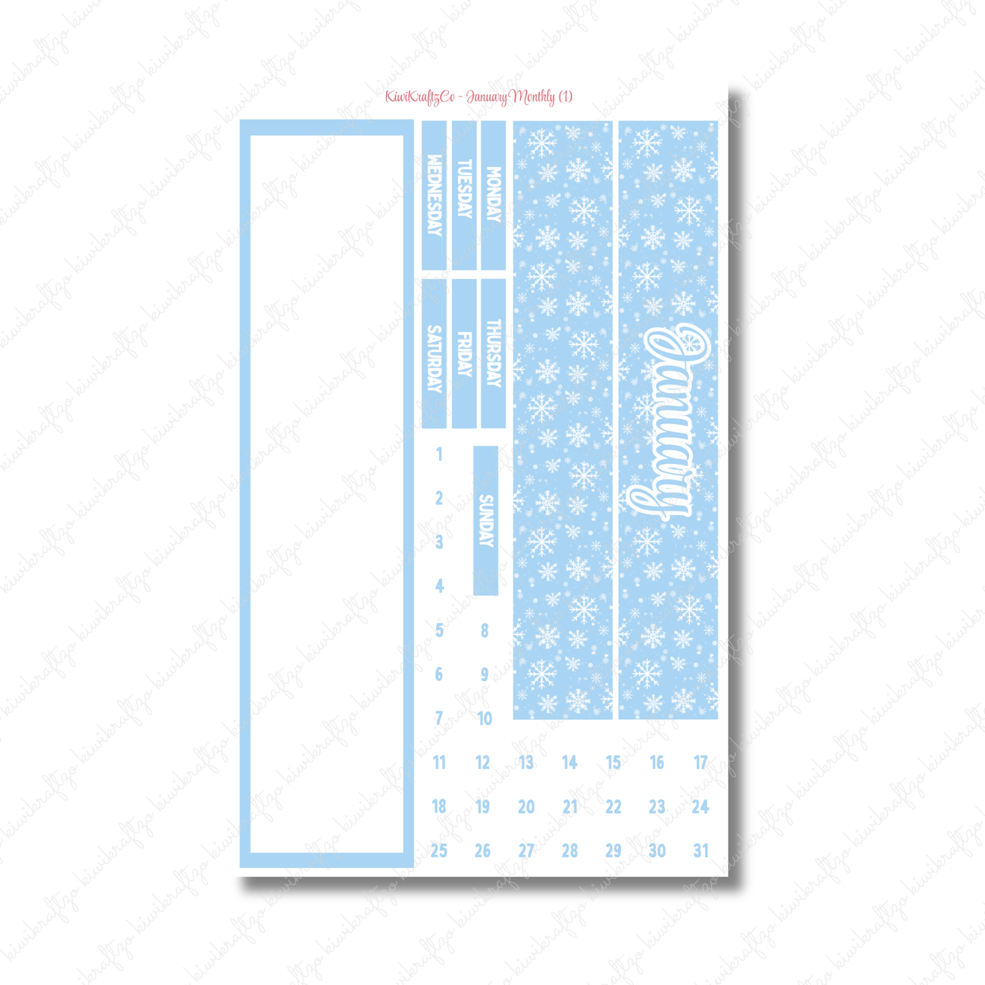 Featuring soft winter blues, delicate snowflake patterns, and cozy illustrated deco, this kit is perfect for setting intentions, tracking important dates, and creating a clean monthly overview without overwhelm.