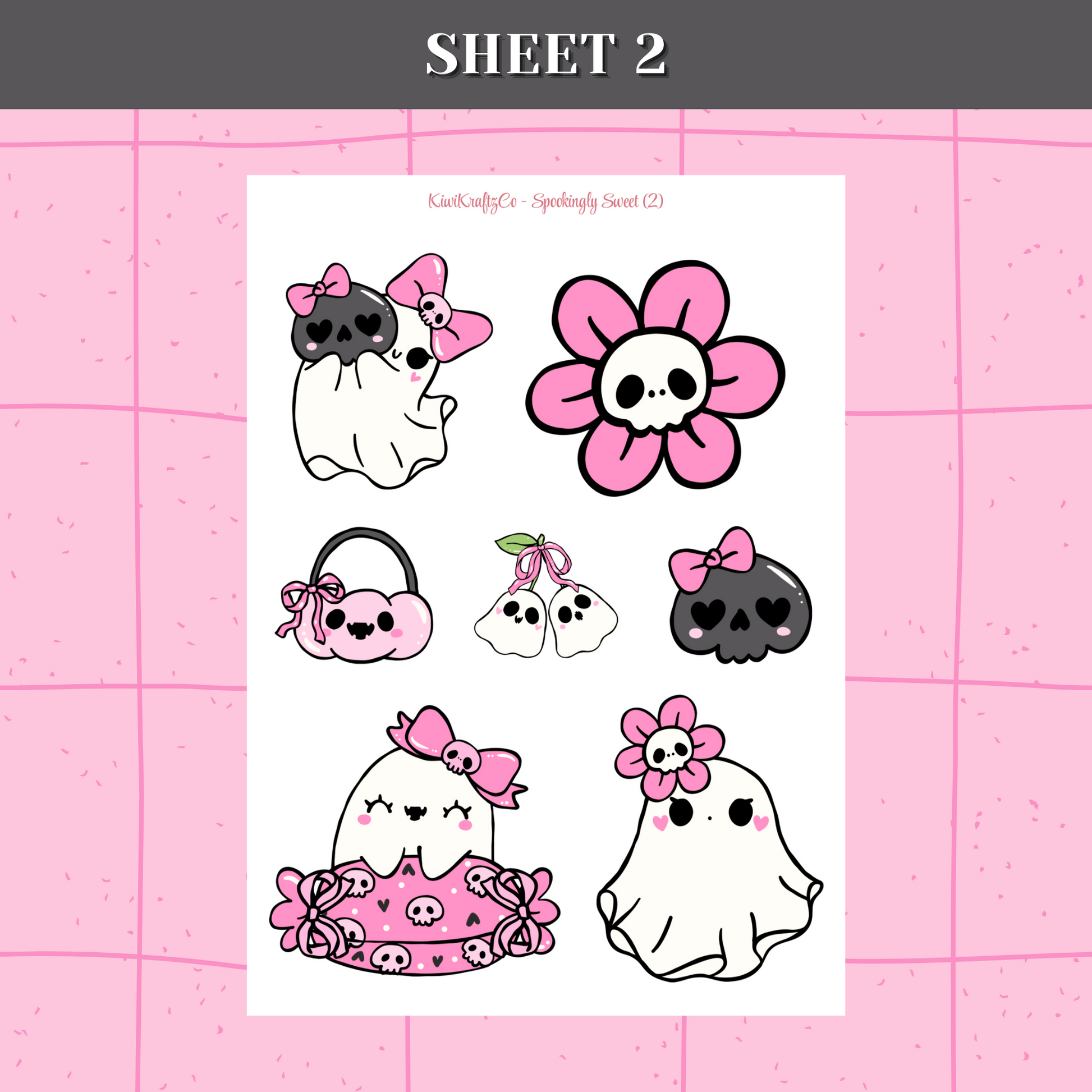 Add a touch of cute to your creepy with Spookingly Sweet! This pastel Halloween sticker kit features adorable ghosties and skulls with bows, and sweet spooky flowers.
