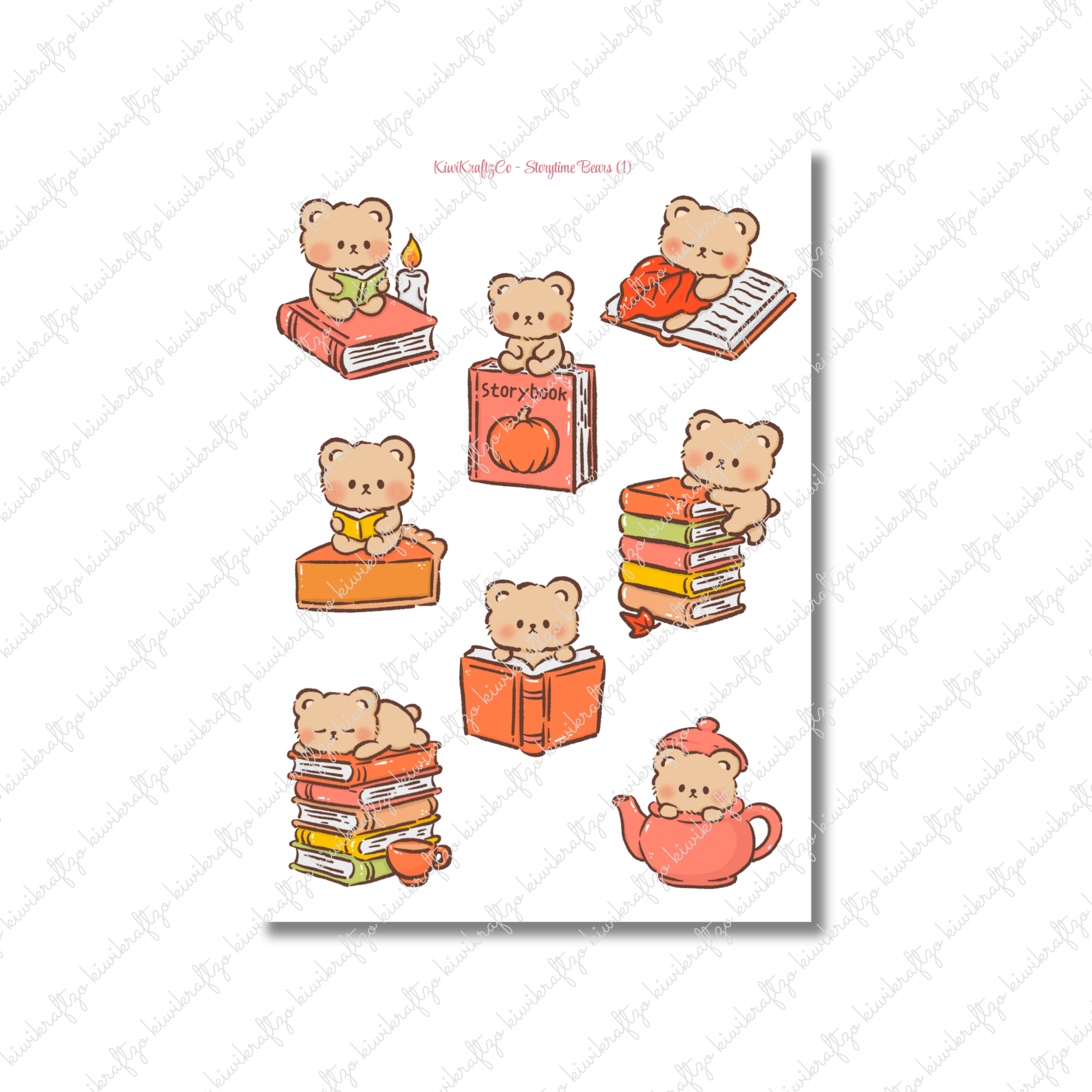 Snuggle up with Storytime Bears! These adorable bears with books, tea, and pumpkin pie add cozy storytelling vibes to any fall day.