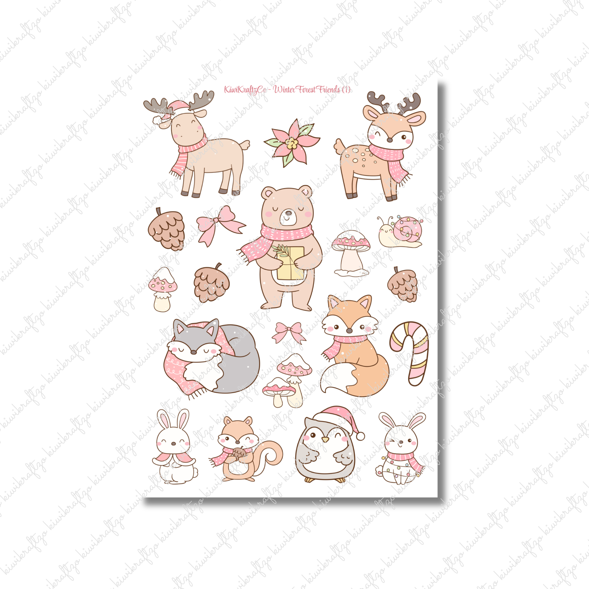 The Winter Forest Friends Kit is full of woodland charm featuring cozy critters like foxes, bears, deer, and bunnies bundled in scarves. Soft blush and neutral tones make this kit perfect for warm, whimsical winter spreads.