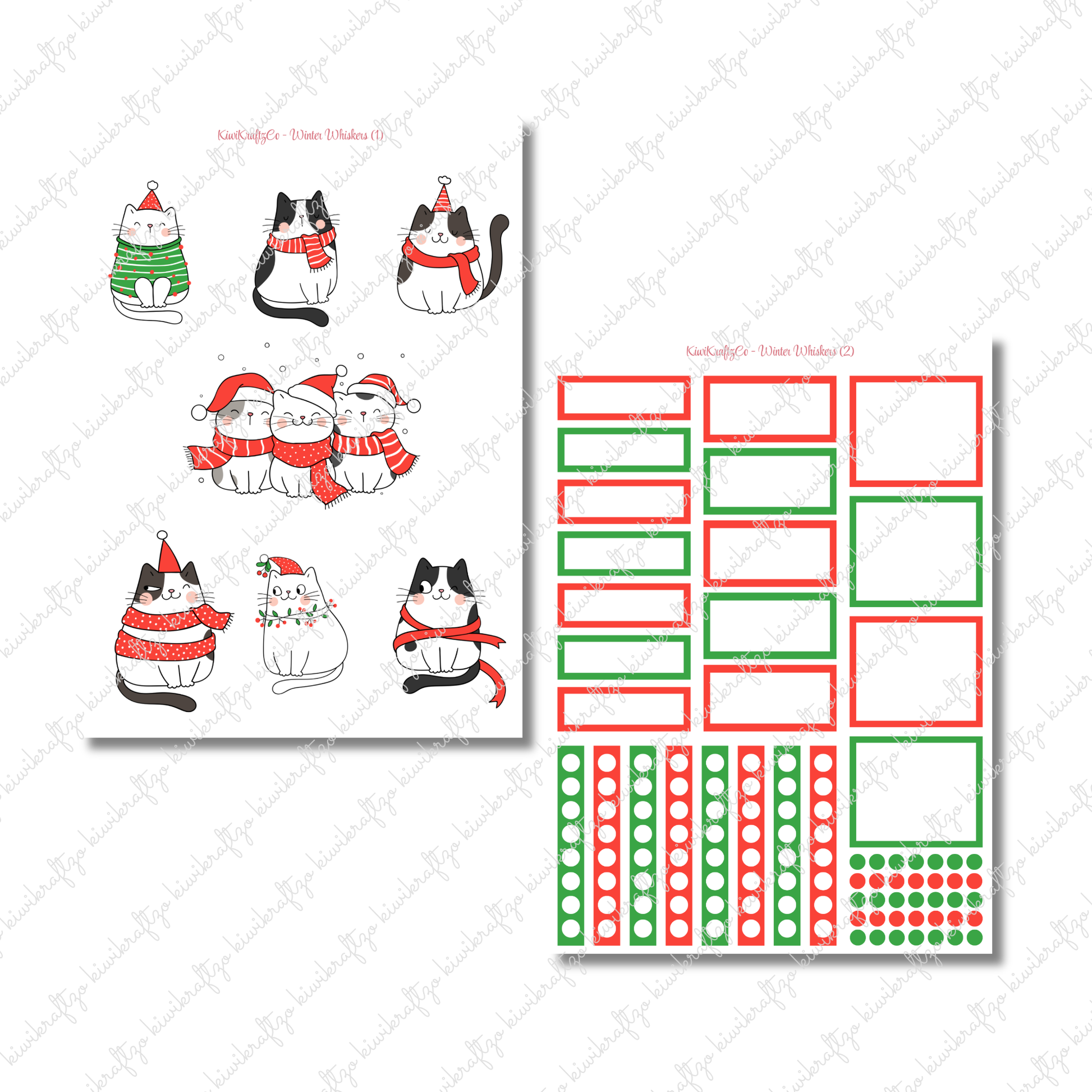 The Winter Whiskers Kit brings festive feline fun to your planner! These adorable black-and-white cats in cozy scarves and Santa hats are ready to spread Christmas cheer in classic red and green style.